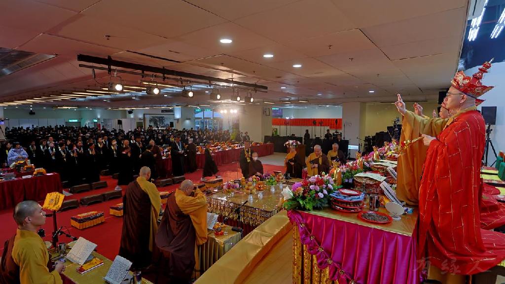 法會由常存法師主法,現場梵音繚繞、莊嚴殊勝,眾多善信虔誠參與,共沐法喜。新北市政府朱副市長代表市長侯友宜出席,感謝靈鷲山長年推動社會教化與公益服務,秉持「守護心靈、互助共濟」的精神,讓宗教信仰成為促進社會安定與向善的重要力量。