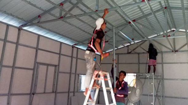 組合屋以鋼構、三夾板與鋁格建材為主,能抗震、防風雨,還有組建快速、造價較低的優點,可在短時間內幫助到更多的災民。規格為16 英尺見方,每間約可住宿4 至6 人,原則上以一個家庭為單位配置,幫助災民們度過漫長的重建之路,也許3 年、5 年甚至更久,讓生活能得安定。