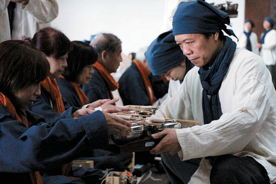 美惠師姐與天來師兄,因為 20 多年前的水陸法會而與靈鷲山結緣,那年天來師兄到緬甸參加短期出家,跟師父說隔年 2 月店就要收起來,師父說:「好啊,山上大殿要蓋好了,你們就來當志工。」因為師父的一句話,從禪法工的培訓開始,夫妻倆和山上的因緣就又接上了。