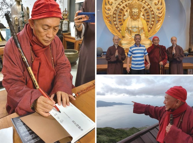 4 月 30 日午後至入夜 8 時餘,心道法師與我連「一見如故」也是多餘,他帶我走覽華藏海大殿、文化走廊、開山聖殿等,際夜登「大金塔」,俯瞰福隆海灣。法師對著海面船隻之捕捉魚苗等頗多憂心,我似乎了然法師思慮根源的同體大悲本願。