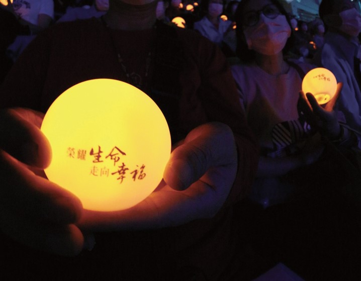 國境未開,許多海外功德主無法回來,首次採取線上直播的方式,讓全球信 眾都能跨越時空參與。這一年,靈鷲山做了許 多防疫和祈福,包括:全球靈鷲人共同持誦 1 億遍〈楞嚴咒心〉;多場法會採取全球線上直播, 讓大家很安全地共同參與;4 月 22 日世界地球日當天晚上 9 點發起「寧靜罩地球」活動,以熄燈寧靜 9 分鐘的具體作為,落實心道法師推動的「愛地球、愛和平」理念。