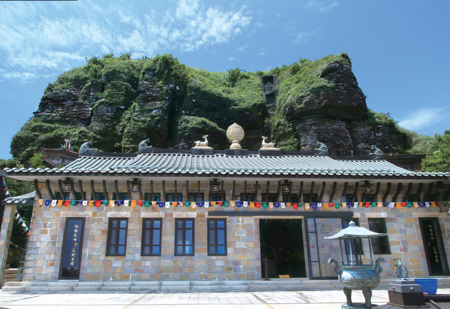 克難樸實的大殿,於1984 年農曆6 月19 日觀音成道日正式開光,這是靈鷲山總本山的歷史座標,也是心道法師從內修到外弘, 從頭陀苦行至菩薩道,一個最重要的分水嶺。當時心道法師尚在斷食中,邀請修學法師、首愚法師等蒞臨開光尊證。這裡依傍麒麟巖而建,殿內供奉一尊左臥佛,別無長物,是跟祖師殿同期就地取材的石壘瓦屋,一派天成。