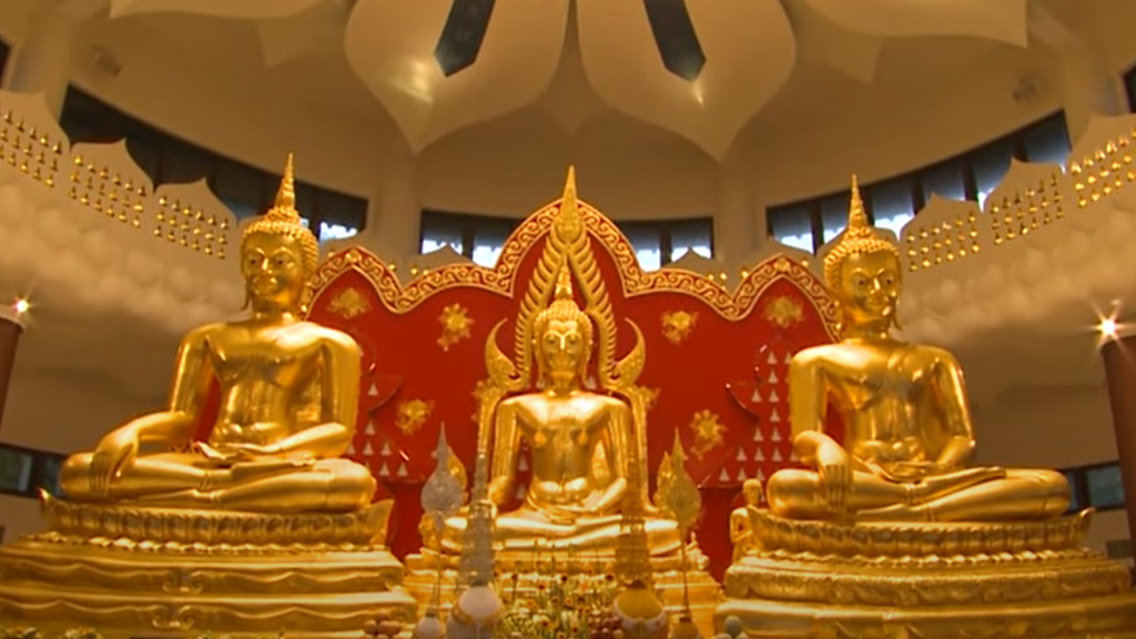 三尊金佛出自「屈拍寫喃撻那馬哈撻」佛寺,建造於素可泰時代朱沙卡拉皇朝,當時國王警覺戰事頻仍、殺戮過重,所造罪業太深重,決定重建此一佛寺,並為佛寺鑄造三尊金佛,以此無上功德回向國難亡者之往生淨土,讓生者安居樂業。