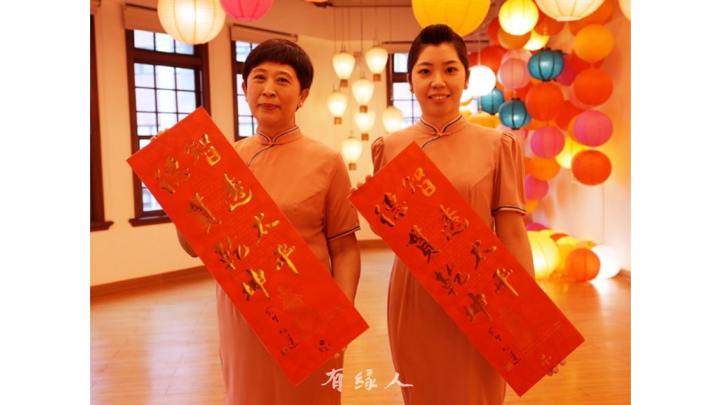 今年春聯底圖印有5 個「五輪塔」,代表宇宙萬物生成的「地、水、火、風、空」5大元素。心道法師曾說:「五輪塔能夠化解地、水、火、風、空五種災難,轉為平安祥和。」輪就是輪圓俱足的意思,五輪表示如來的功德是圓滿無缺的,而五大也就是法界的本質。還有淡淡的蓮花圖像襯底,象徵多元共生、和諧共處的「華嚴世界」,意義非凡。
