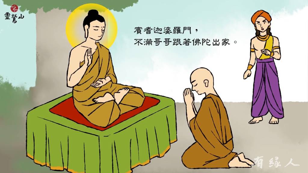 賓耆迦:「我以前聽婆羅門的長老、大師們說,一位真正的阿羅漢覺悟者,即使遭受辱罵、瞠怒等等訶責對待,是不會生氣憤怒的,我看你該不會是生氣了吧?」