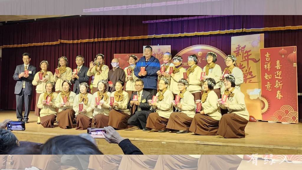 最後精彩的活動;邀請了 靈鷲山常住 當家常存法師,來為今天這新的一年開頭,做一個收攝圓滿開示 ,我們在生活中要快樂,有三大元素;包括稟持感恩的心和時時讚嘆他人。