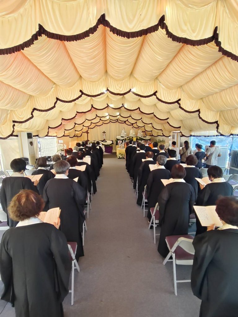 你一起陪伴災民進行後續家園重建。當時聯合靈堂仍在搭設中,你看到已陸續有其他教團或單位至現場念佛或誦經,發現現場還沒有念佛機,來持續安定與陪伴往生者與家屬。在準備贊經前,你們就先將心道師父的念佛的聲音播放出來,希望能先安定罹難者。贊經時,