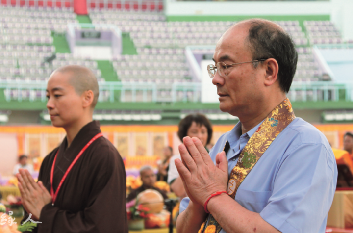靈鷲山第 30 屆水陸空大法會 8 月 16 日啟建當天,與長年發心奉獻水陸法會的大護法許松文師兄約訪。就像平常招呼親友般,他熱絡的招呼筆者入廳,「來坐這,不